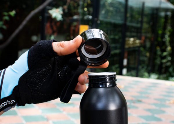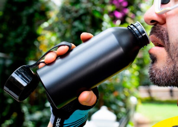 Botella fabricada en aluminio, equipada con tapa de cierre giratorio hecha en material translúcido y correa en goma para facilitar el transporte. Su diseño resistente y funcional la hace adecuada para uso diario en diferentes entornos. Ideal para mantener hidratación en movimiento. Capacidad: 500 ml / 17 Oz